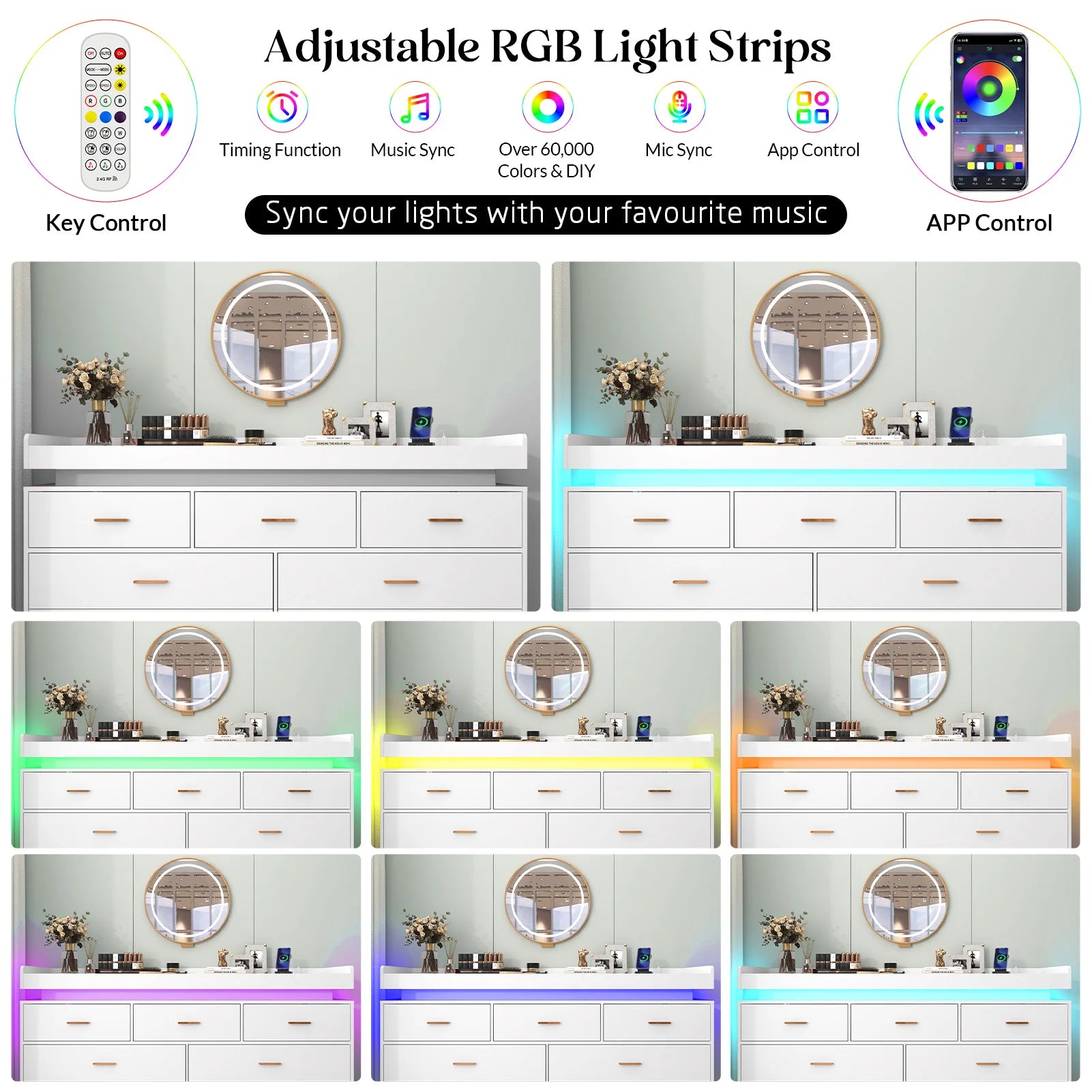 Modern 7 Drawer Dresser with LED Light Charging Station Chest of Drawers