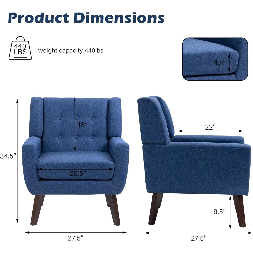 Modern Upholstered Accent Chair Mid Century Lounge Armchair Living Room