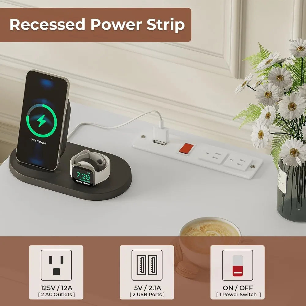 - Integrated Charging Station: Stay connected with ease! The built-in charging station includes an on-off switch, 2 outlets, and 2 USB ports, allowing you to charge your devices conveniently from the comfort of your bed.
