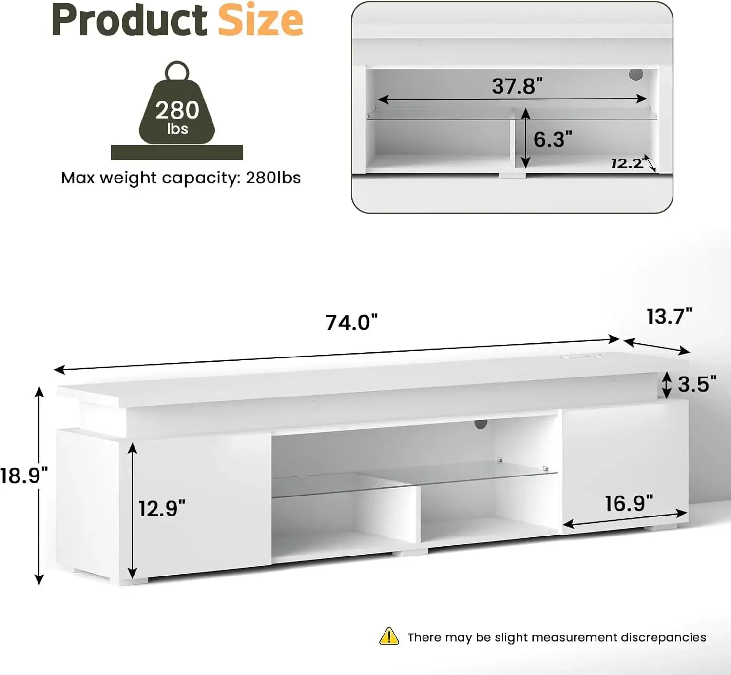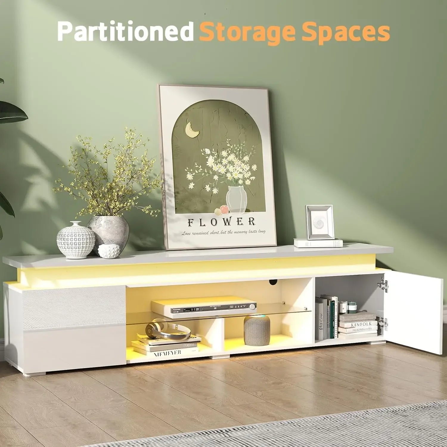 Transform your living space with the Ljustra Modern TV Stand, designed to accommodate TVs up to 85 inches. This stylish entertainment center not only provides ample storage but also enhances your viewing experience with customizable LED lighting.