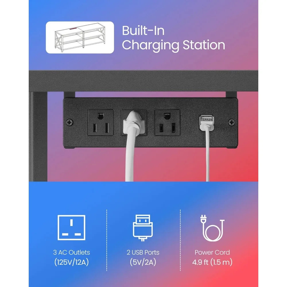 - BUILT-IN CHARGING STATION: Equipped with a power strip featuring 3 AC outlets and 2 USB ports, this TV stand allows you to power your TV, gaming console, and other electronic devices conveniently.