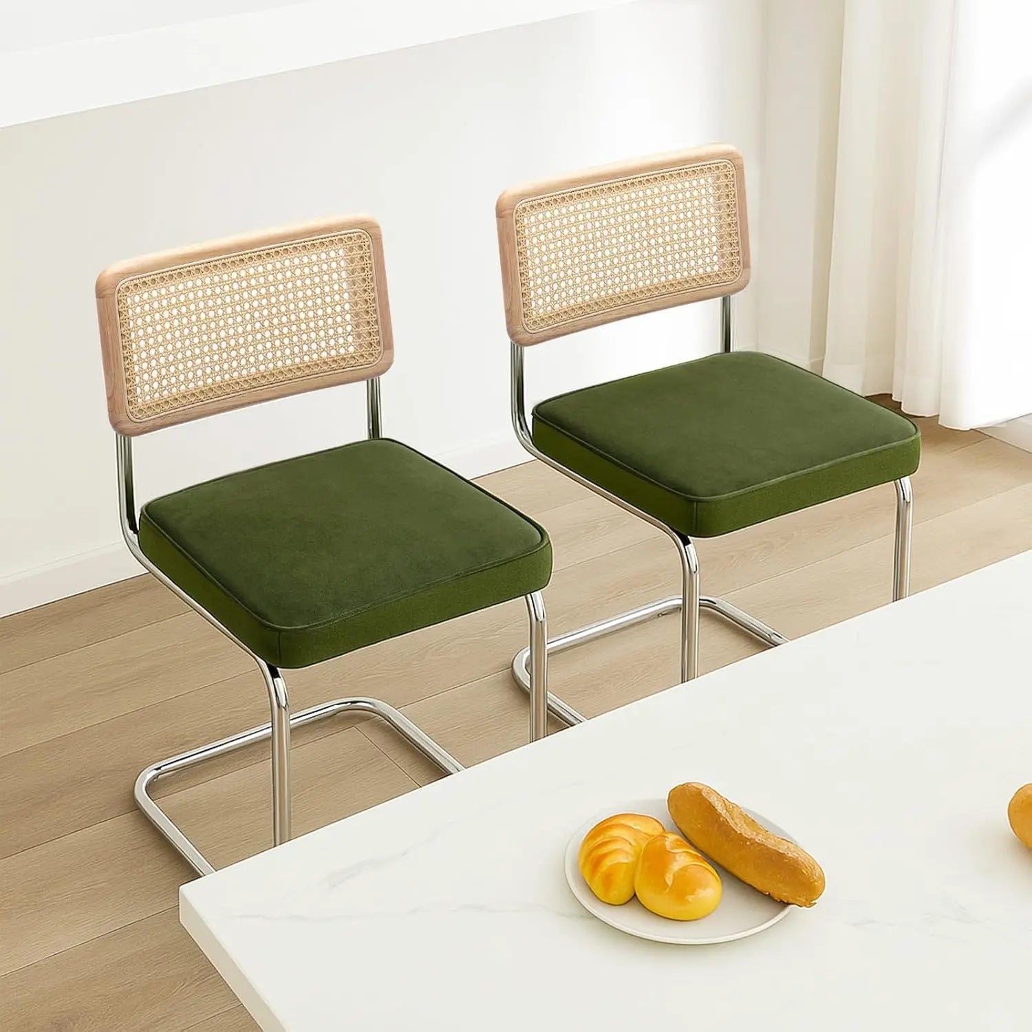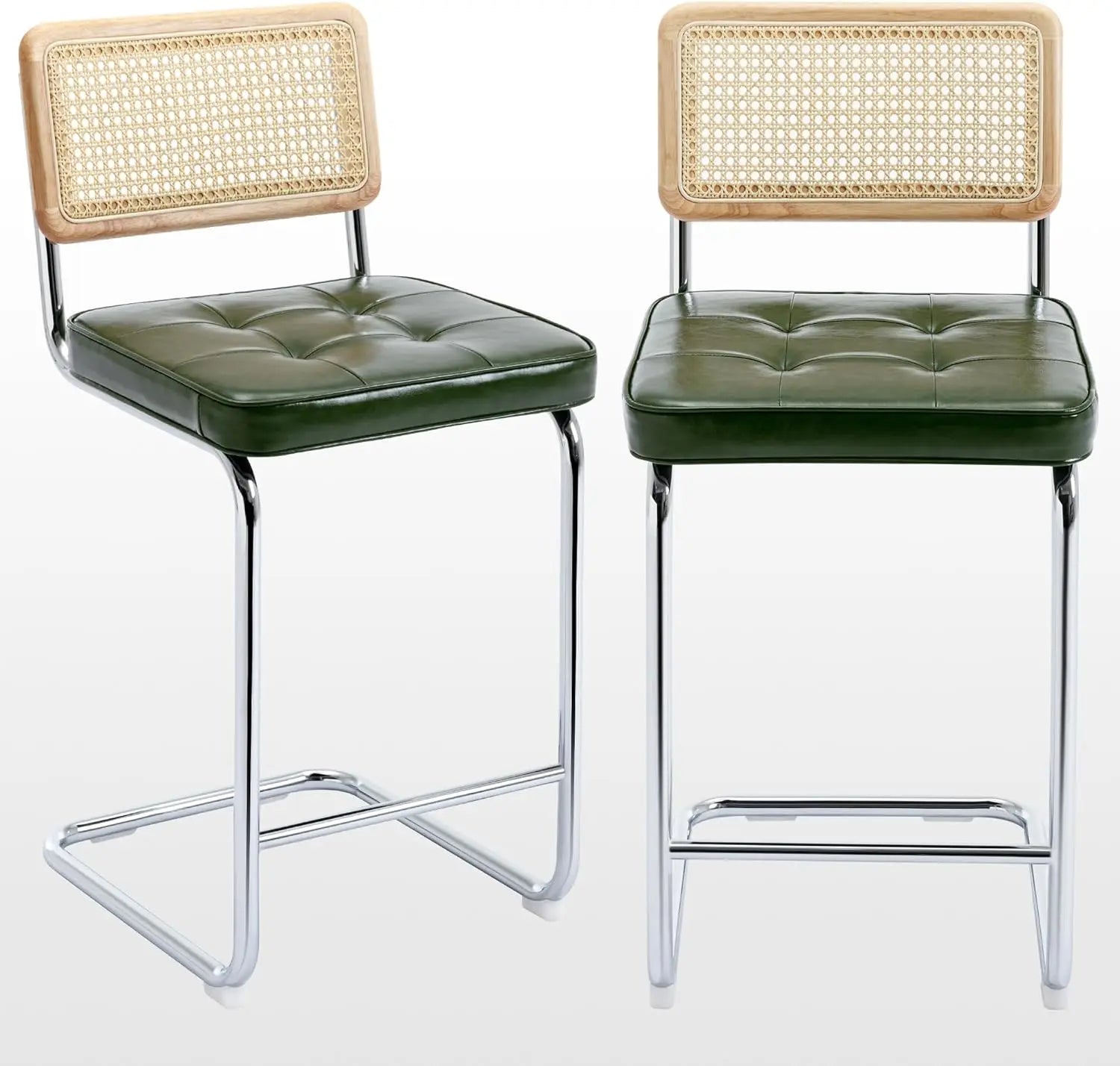 - Mid-Century Modern Design: With a rattan cane back and vibrant velvet seat, these stools nod to the classic designs of the 1920s while adding a pop of modern color.