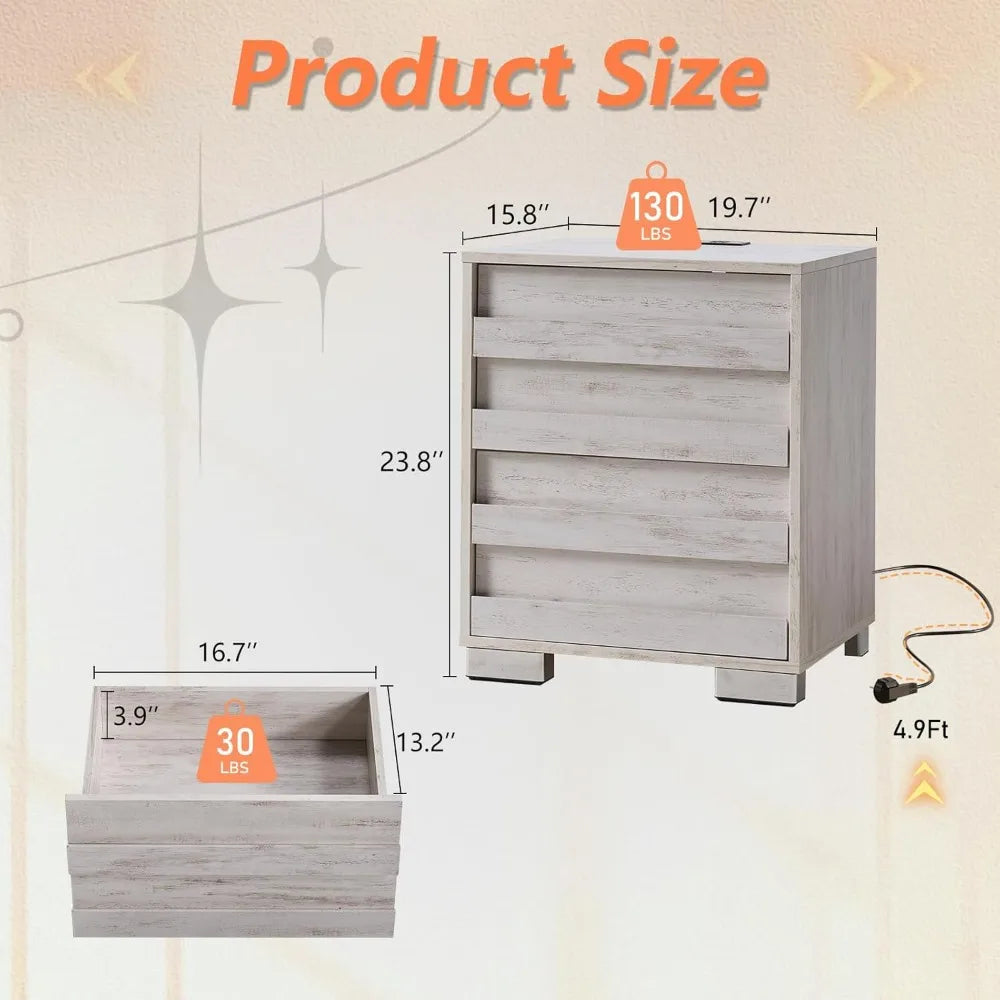 Nightstand Set of 2 with Charging Station Farmhouse Side Table