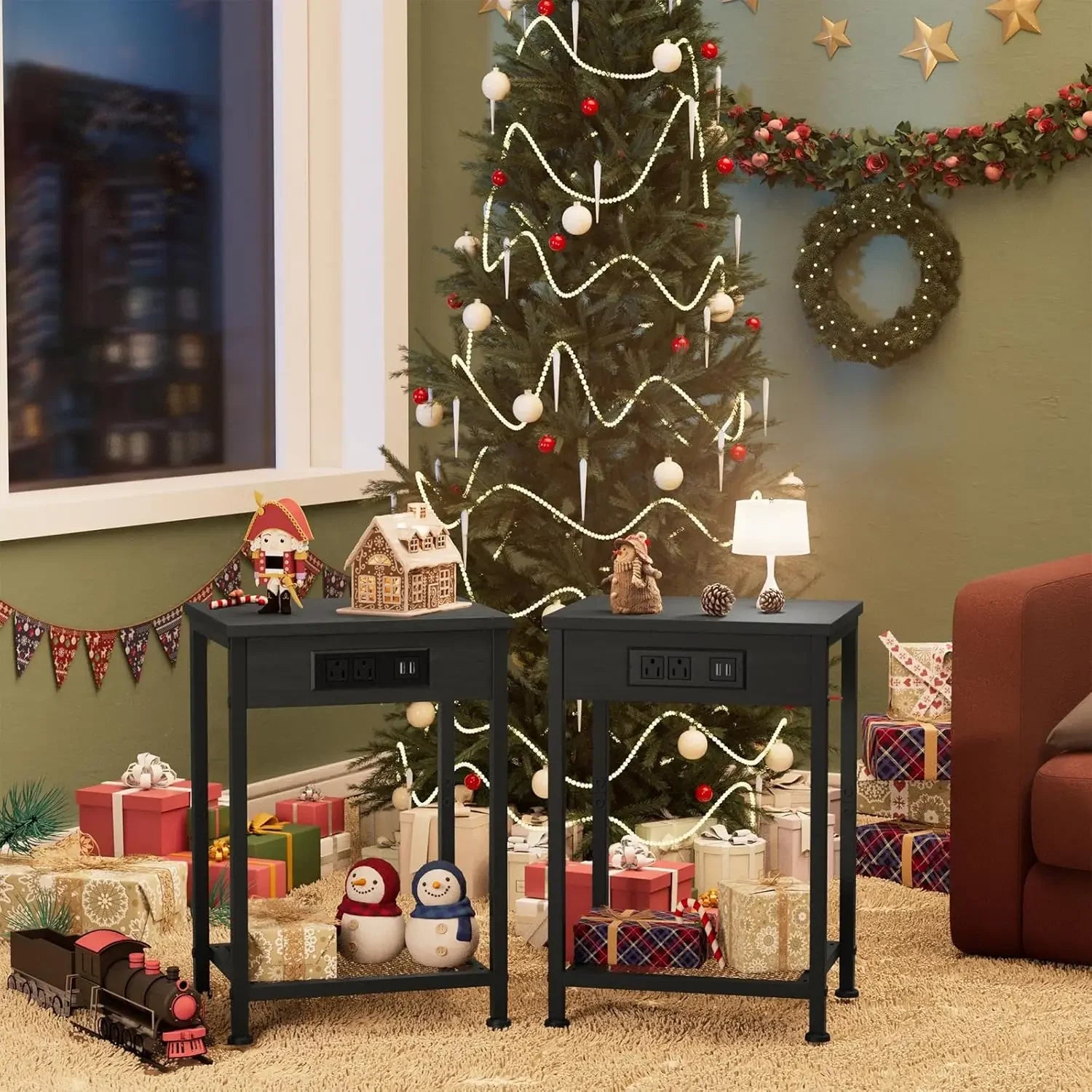 Nightstands Set of 2 with Charging Station USB Ports Bedside Table