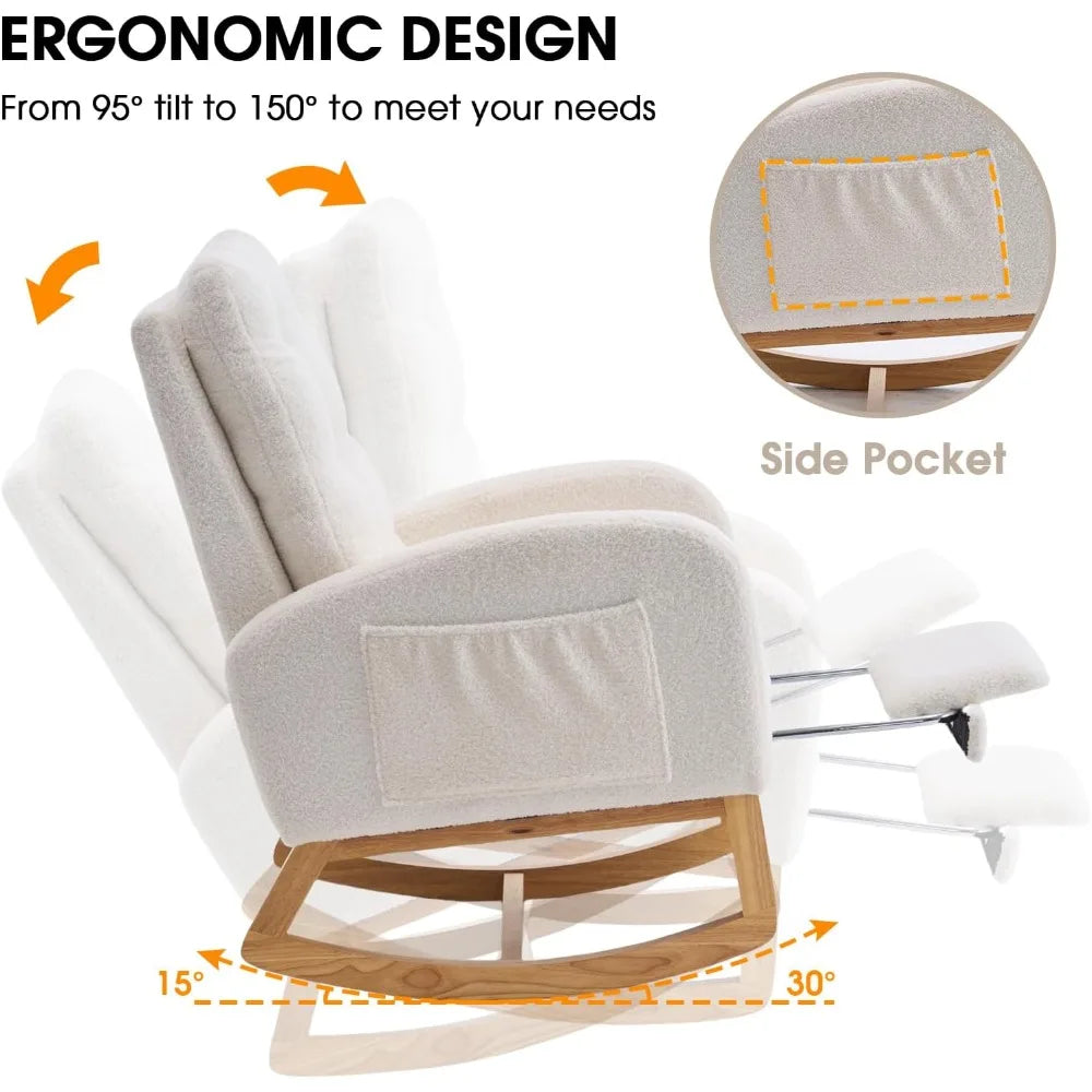 Nursery Rocking Chair Teddy Upholstered Glider Chair with Footrest