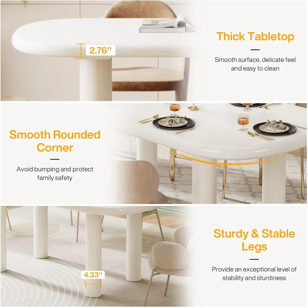 Modern Oval Dining Table for 6 Cream White Kitchen Dining Room Furniture