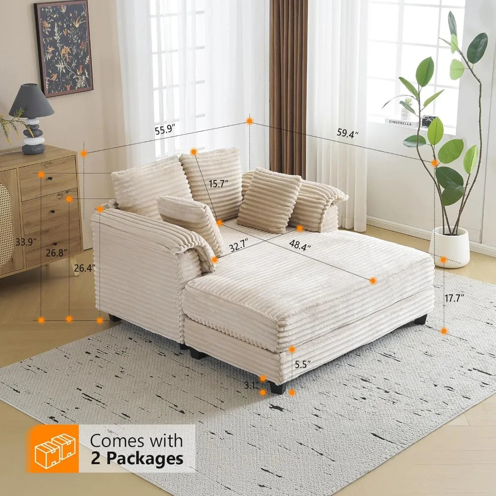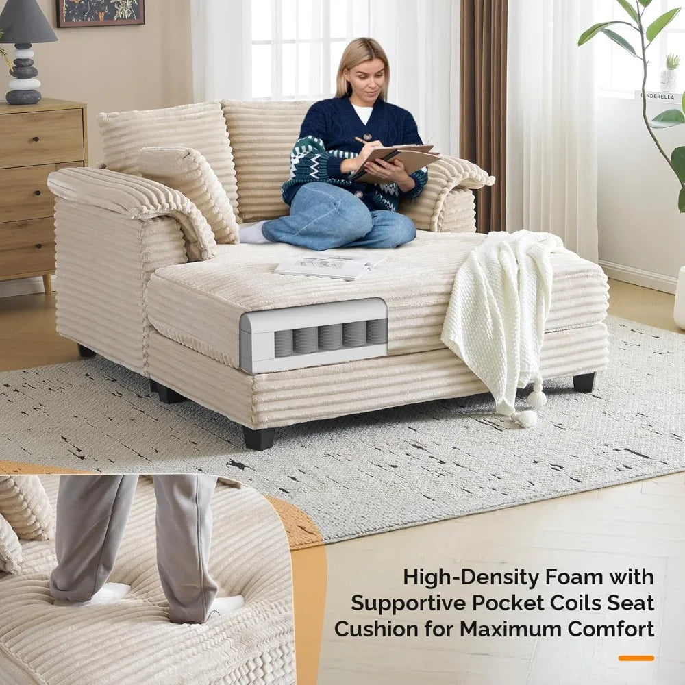 Oversized Chaise Lounge Chair Comfy Corduroy Recliner Sofa Bed