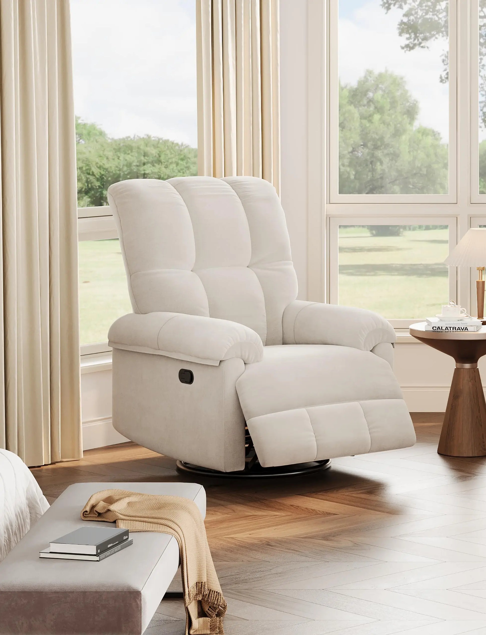 Oversized Recliner Chair Soft Chenille Swivel Rocker for Nursery Living Room