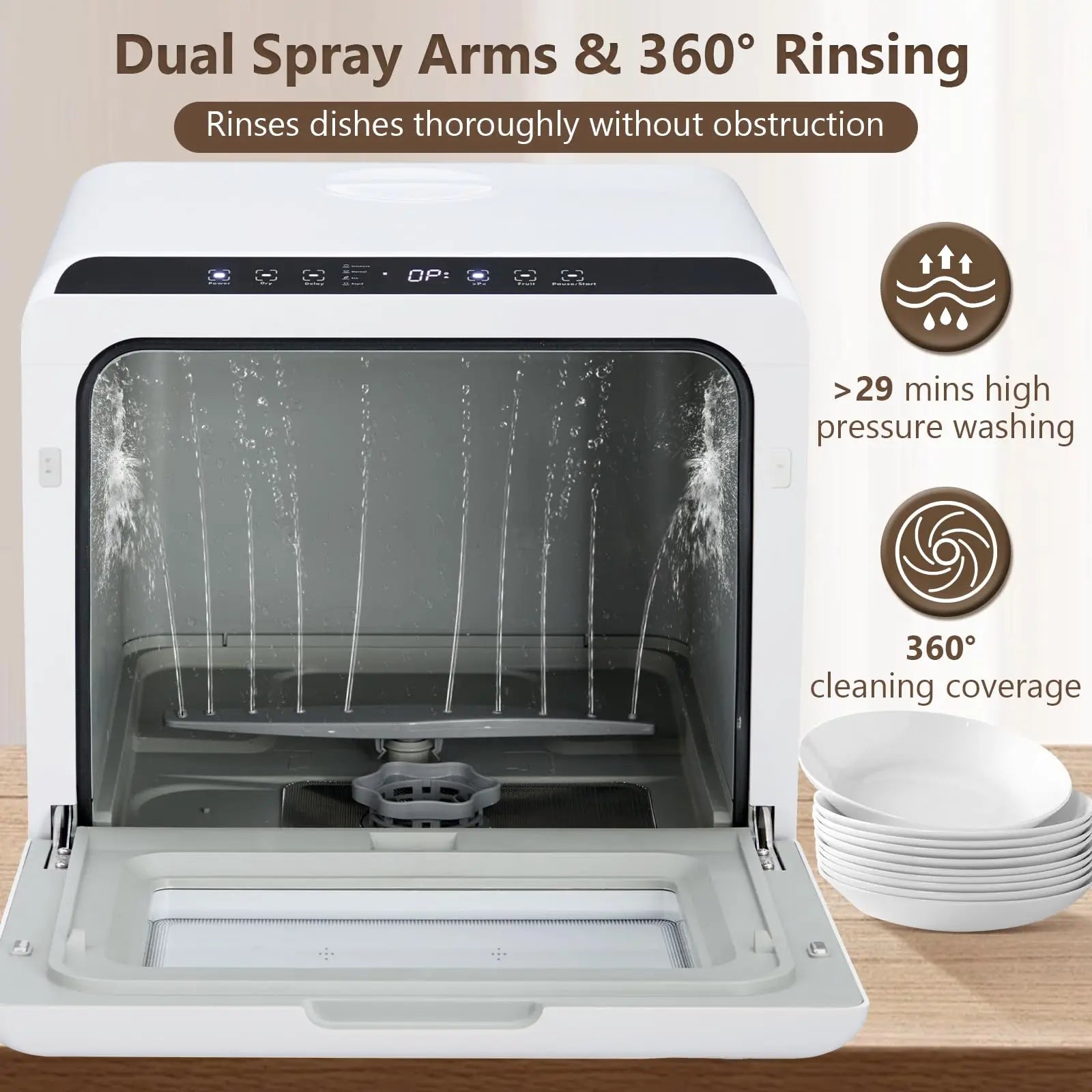 Portable Countertop Dishwasher Mini 5L Built-in Water Tank 360° Cleaning