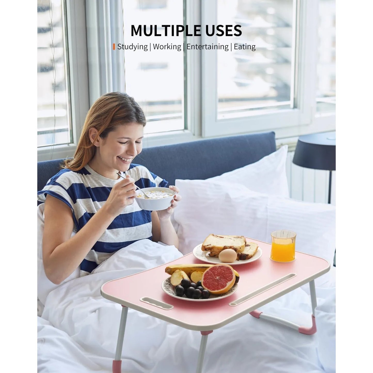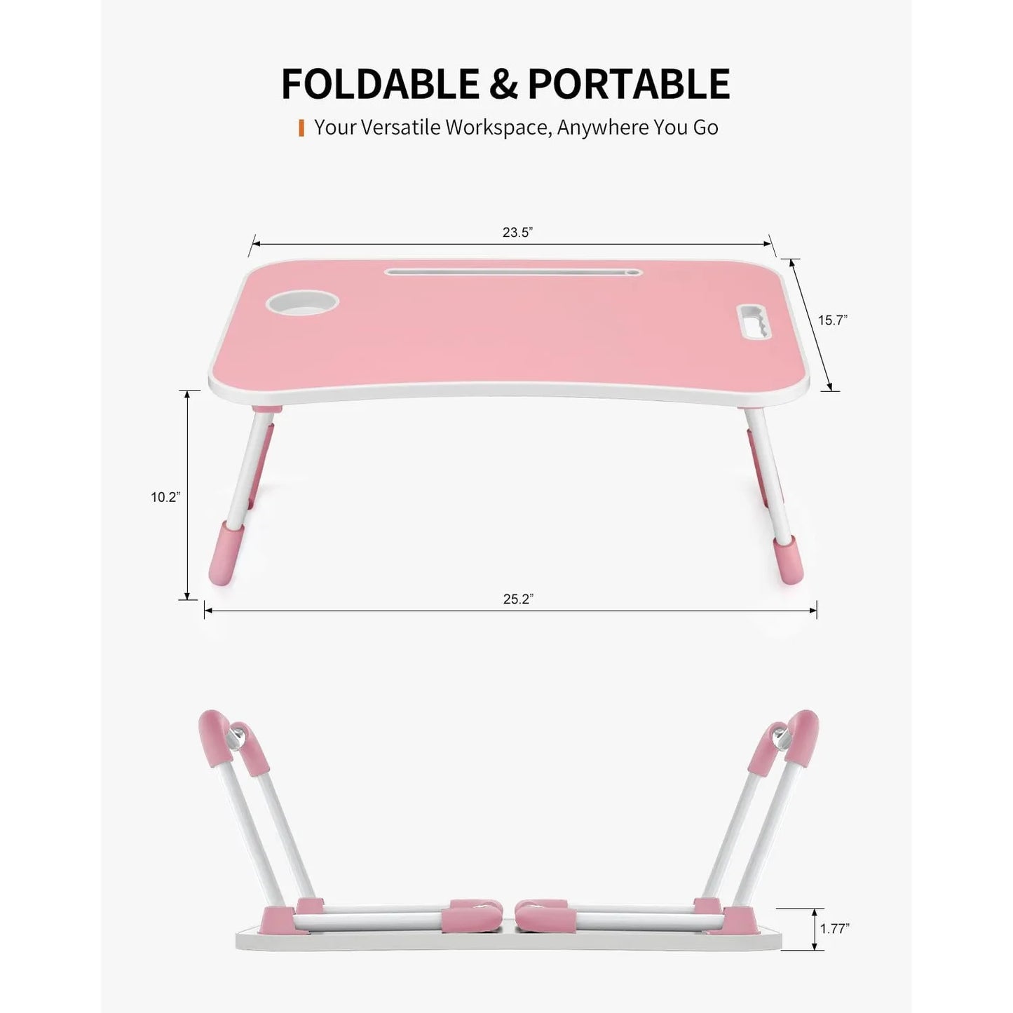 Portable Laptop Table with Cup Holder Tablet Slot and Carry Handle
