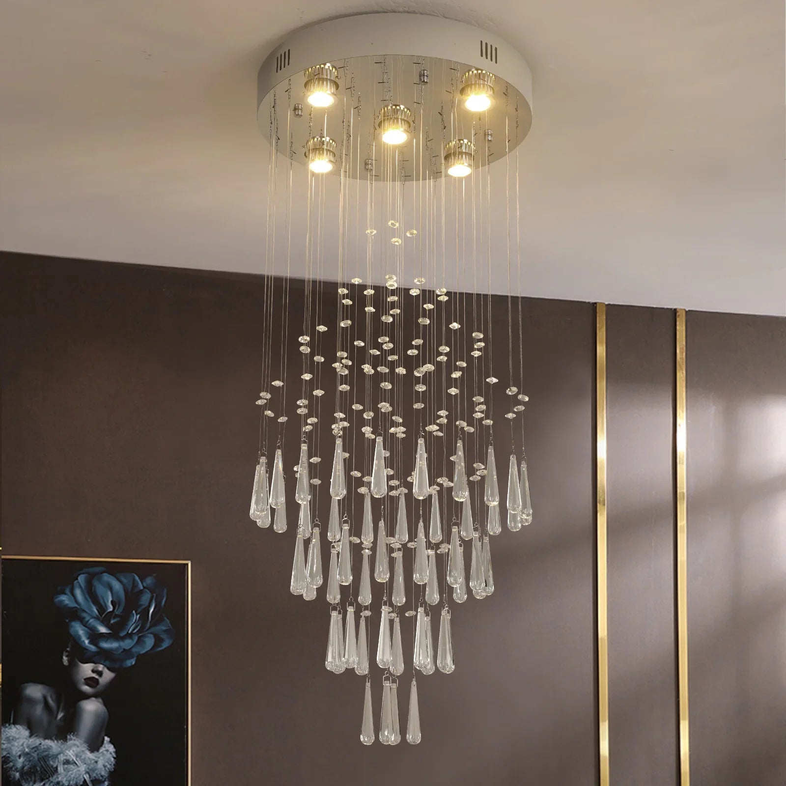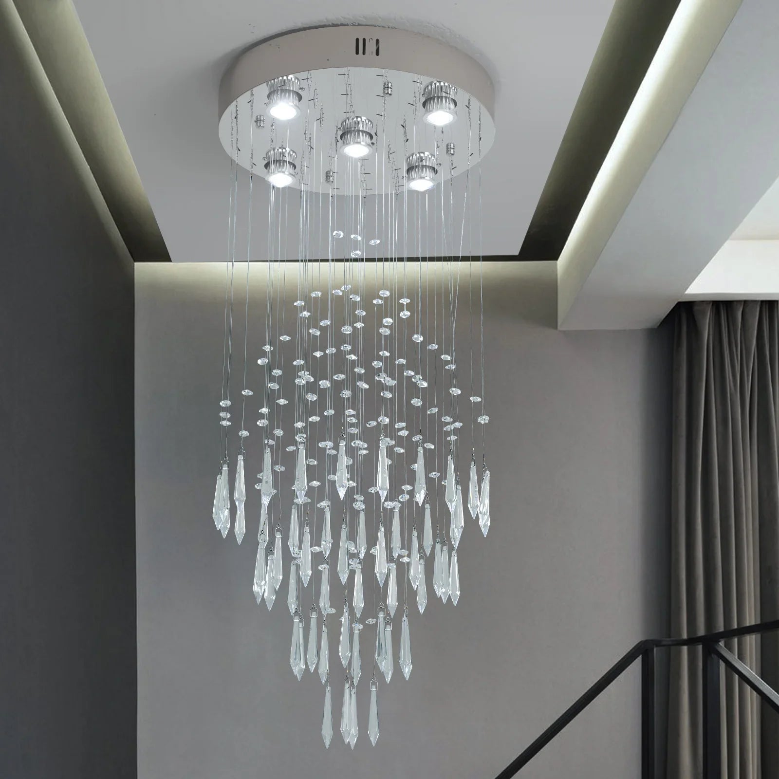 Transform your home with the stunning Raindrop LED Crystal Pendant Light, a perfect blend of modern luxury and minimalist design. This exquisite chandelier is not just a lighting fixture; it’s a statement piece that enhances any room's ambiance, making it ideal for your living room, dining room, or foyer.