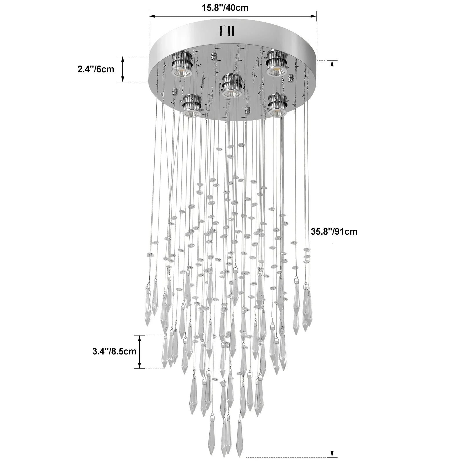 This chandelier's polished chrome finish and up & down shade direction not only provide ample light but also create a captivating visual effect. Perfect for both residential and commercial spaces such as hotels, restaurants, and bars.