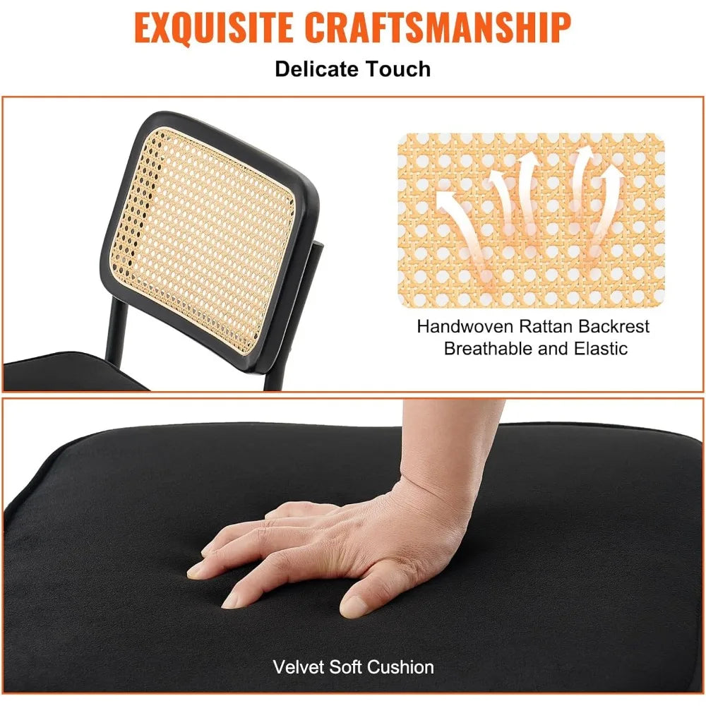- Exquisite Rattan Weaving: Crafted with premium PE rattan, our chairs are designed for those who seek comfort and style. The breathable rattan backrest paired with a plush velvet seat cushion offers a unique aesthetic appeal.