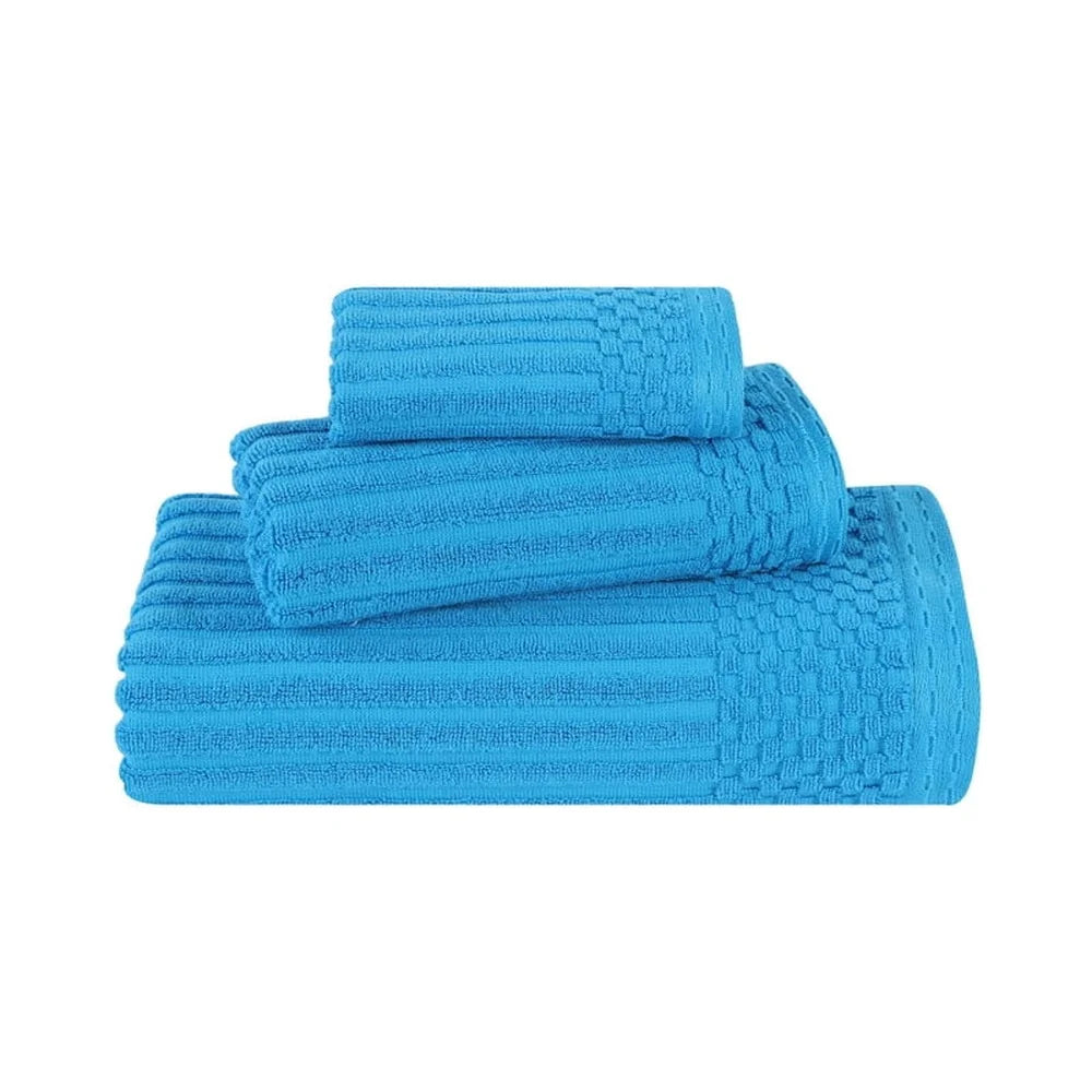 3 Piece Ribbed Cotton Towel Set Absorbent Quick Dry Bathroom Essentials