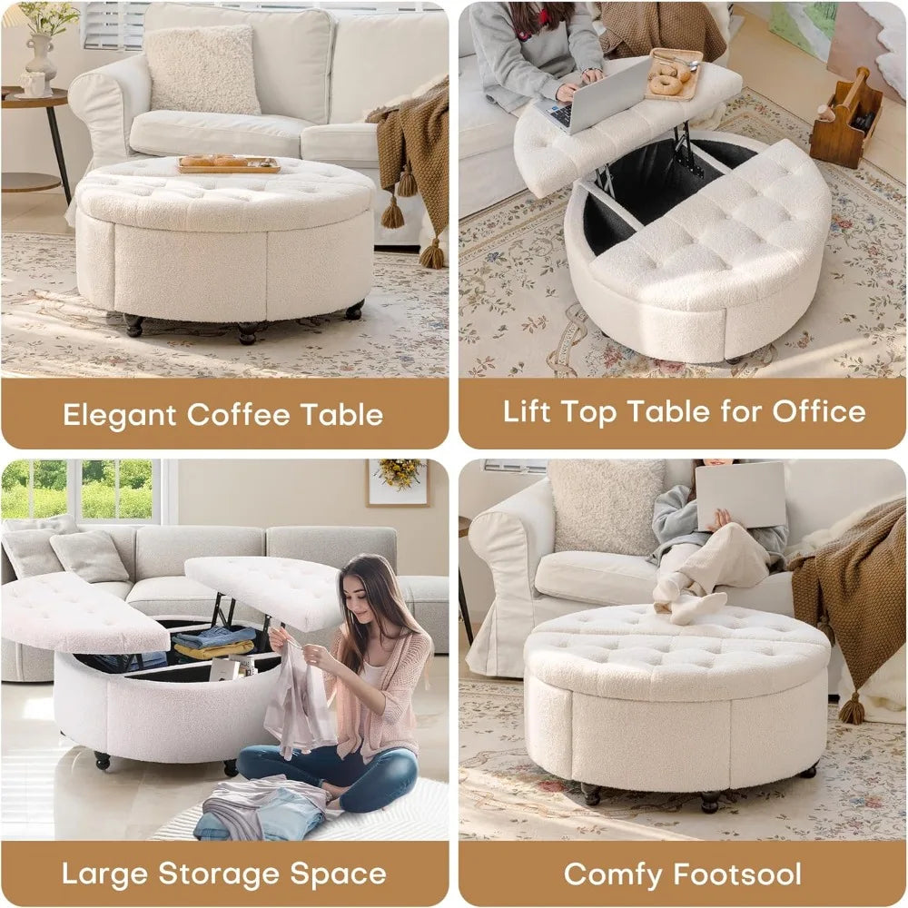 Transform Your Living Space with Our Round Storage Ottoman Coffee Table