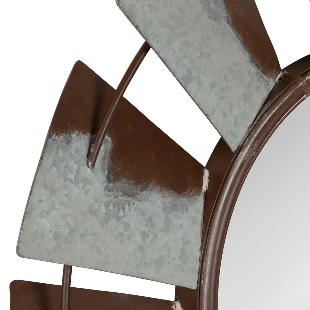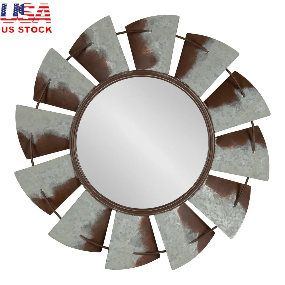 Bring a touch of rustic charm to your home with Ljustra's Extra Large Distressed Metal Wall Mirror. This stunning piece features a vintage windmill design that enhances any room's decor, from the living room to the kitchen, and even in a cozy bedroom.