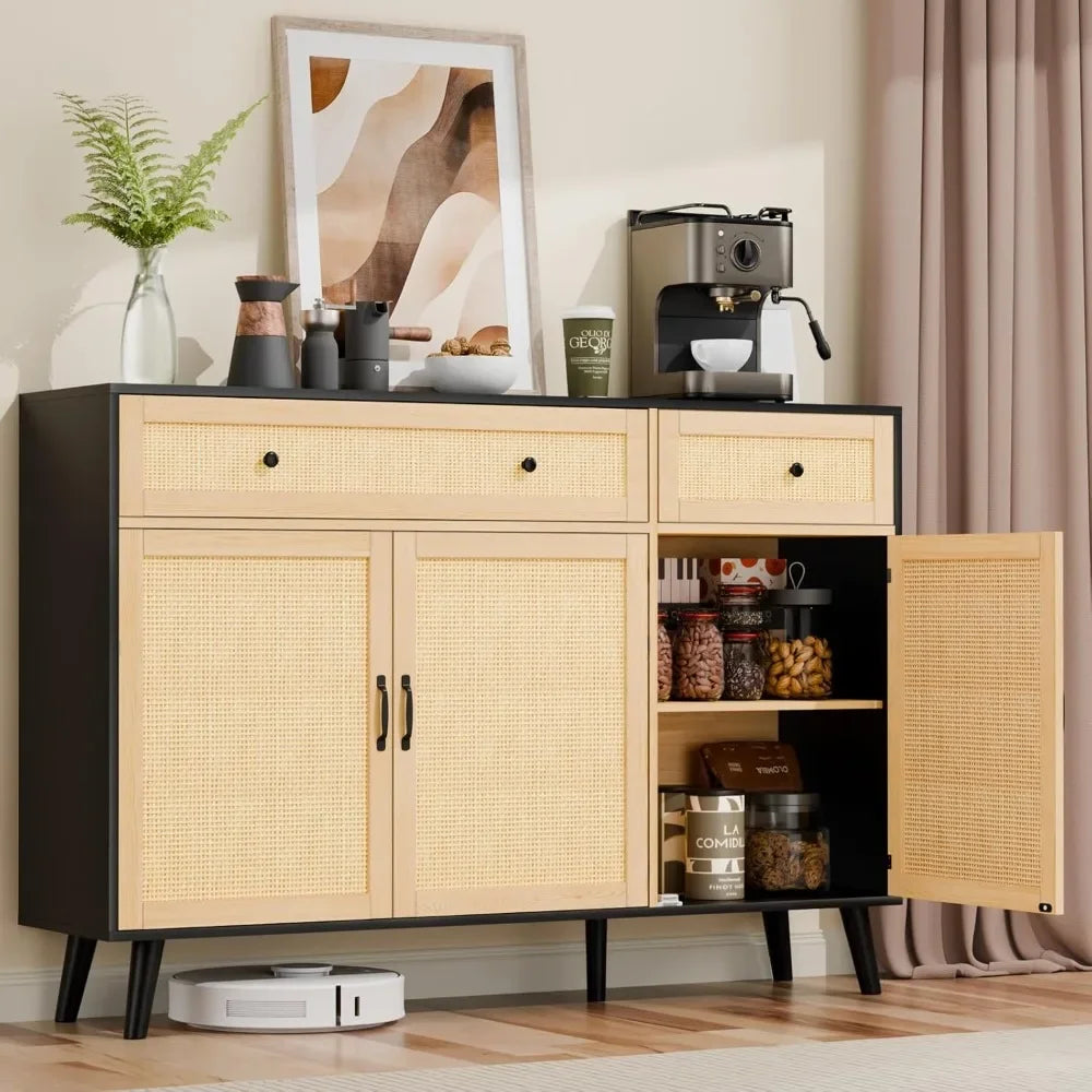 【Aesthetic Design】Featuring a woven rattan design, clean lines and natural tones, this sideboard adds a touch of elegance to your home and enhances the overall aesthetic appeal. This sophisticated piece of furniture is the perfect addition to any room in your home, perfect for the kitchen, dining room, living room, entryway or sunroom.