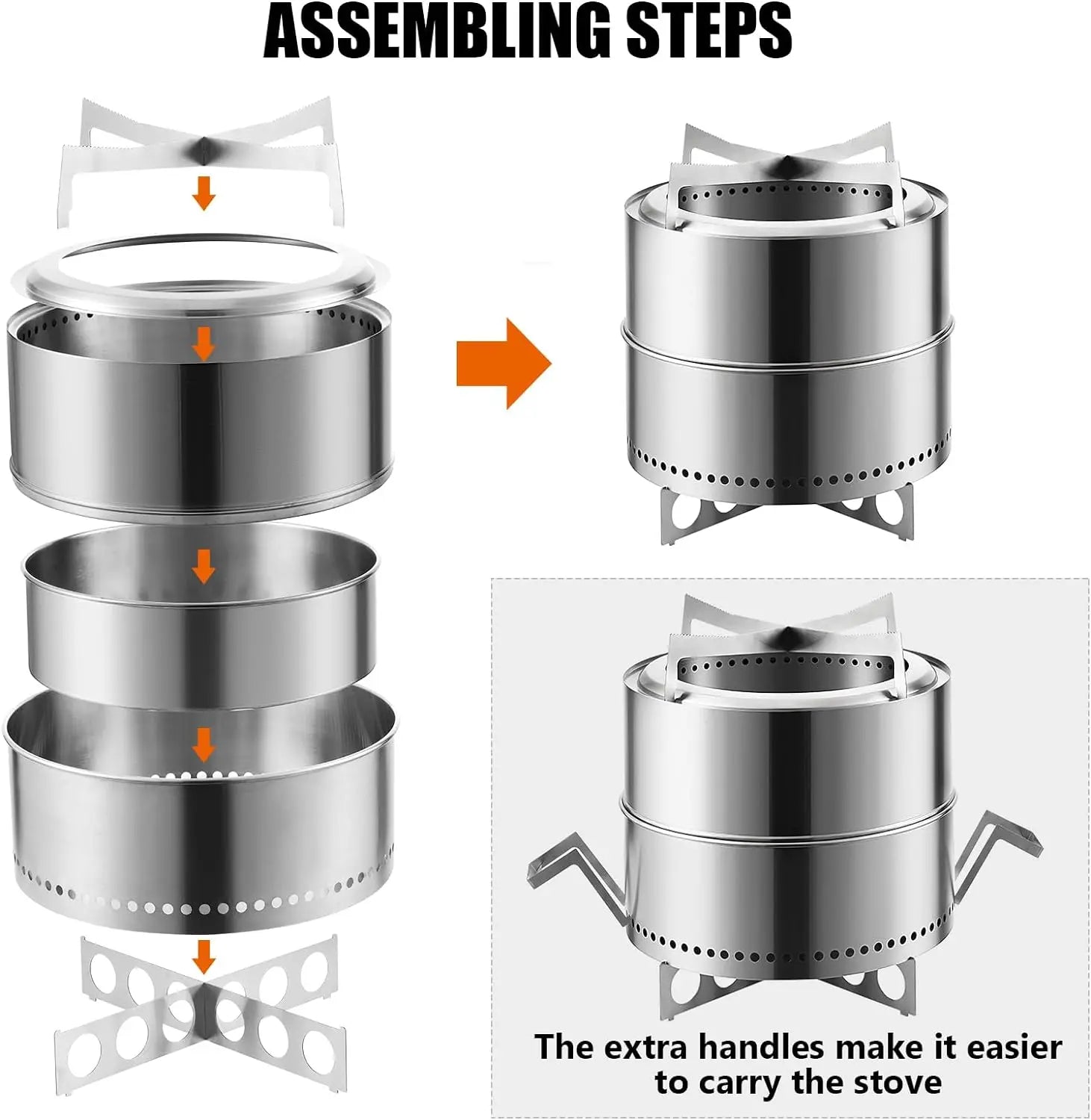 19 Inch Smokeless Fire Pit Stainless Steel Wood Burning Outdoor Fireplace