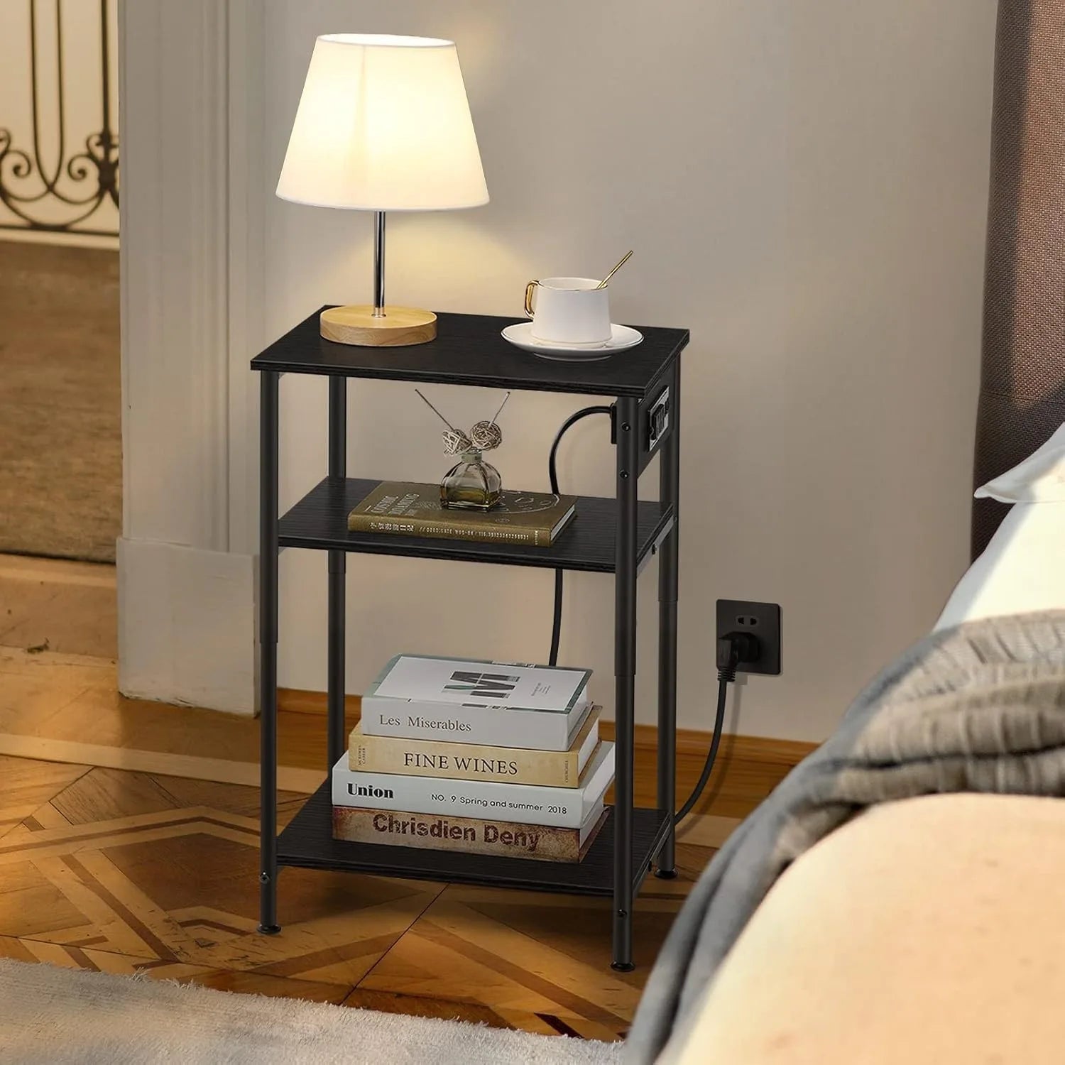 Space Saving Nightstand with USB Ports and Storage Drawer for Bedroom