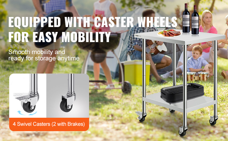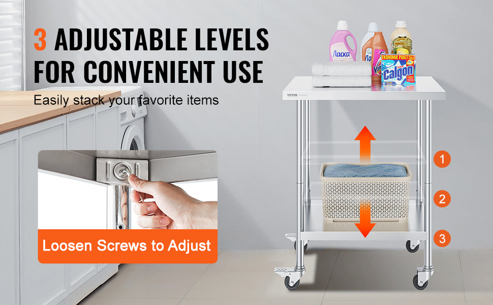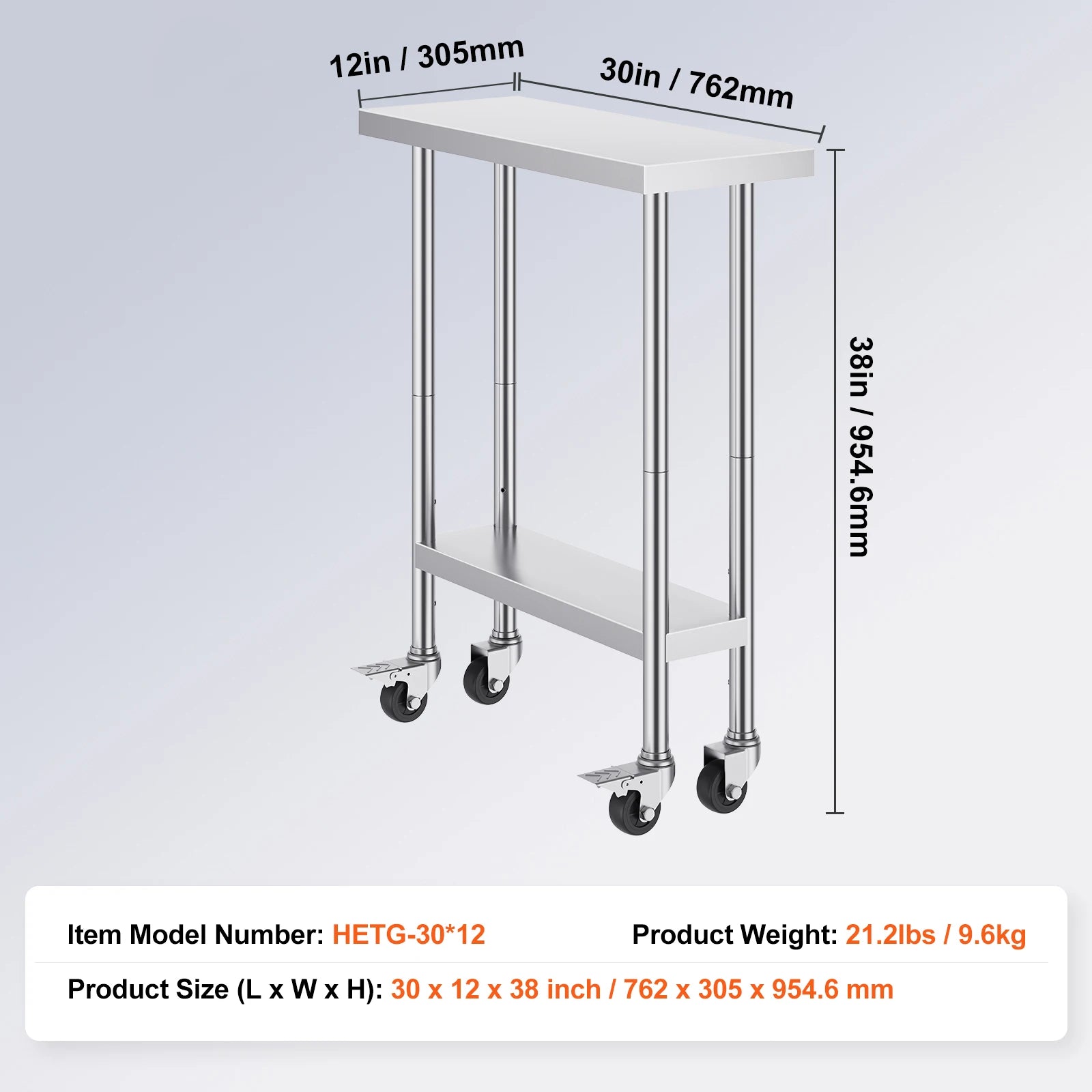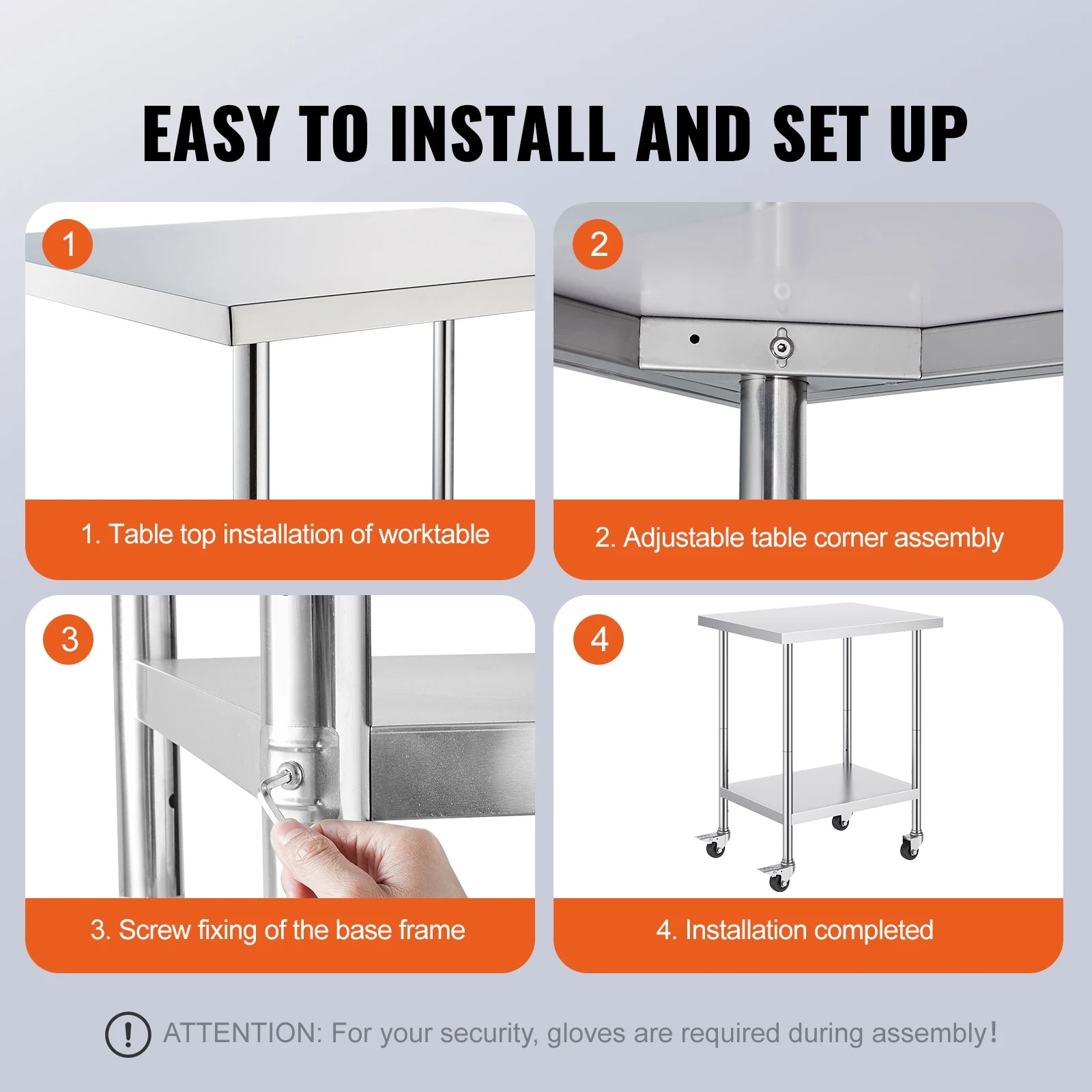 Heavy Duty Stainless Steel Work Table with Wheels Adjustable Height