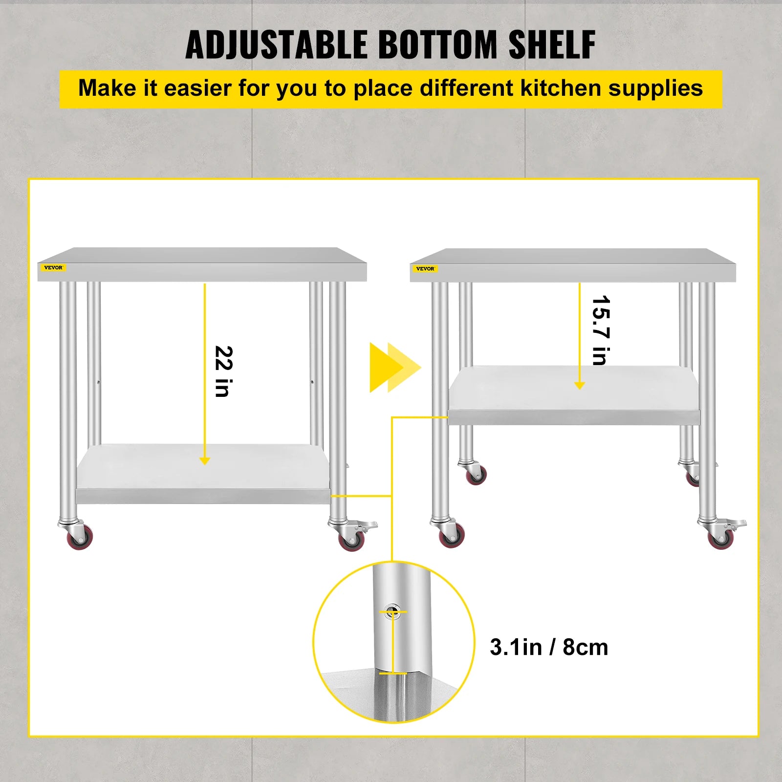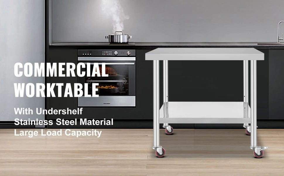 Upgrade your kitchen workspace with the SucceBuy Stainless Steel Kitchen Prep Table. Enjoy the blend of style, strength, and convenience in your culinary adventures!