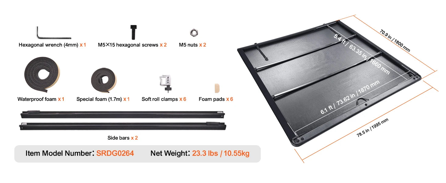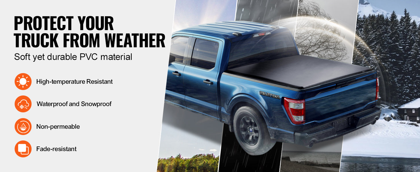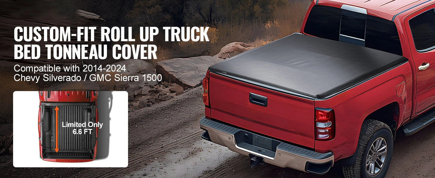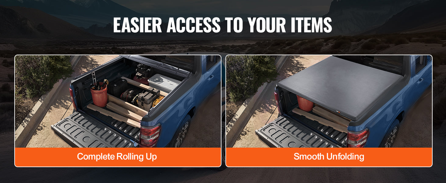 - Easy Roll-Up Design: Quickly roll up or unfold for 100% access to your truck bed, secured with safety buckles for convenience.