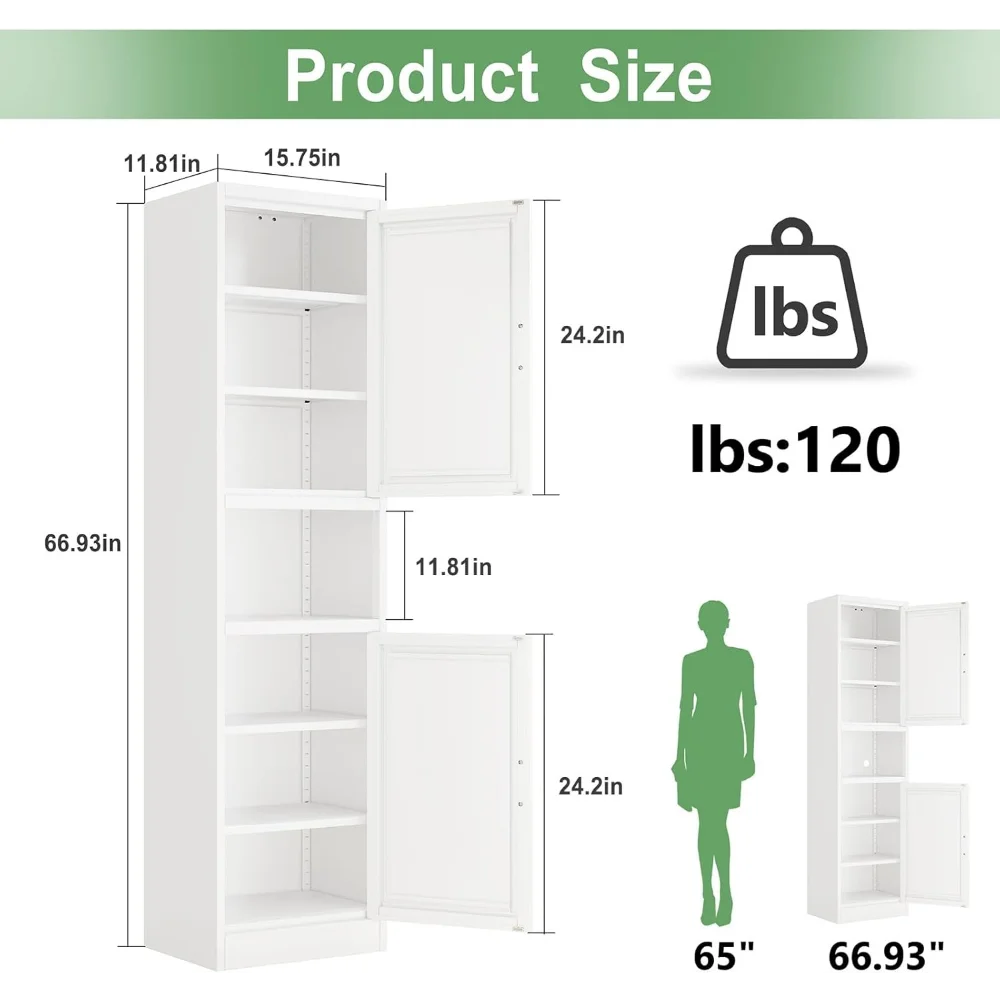 Tall Narrow Storage Cabinet 66.93" H Adjustable Shelves Metal Pantry