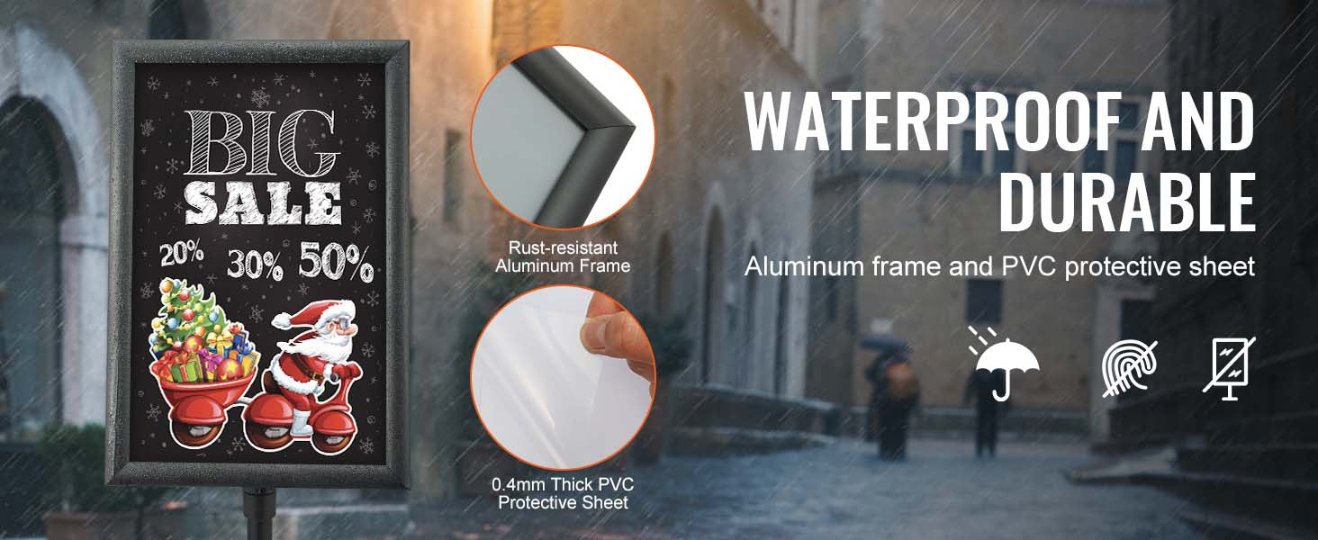 - Durable Materials: Constructed with a sturdy aluminum frame and a 0.4mm PVC protective sheet to withstand outdoor elements while preserving clarity.