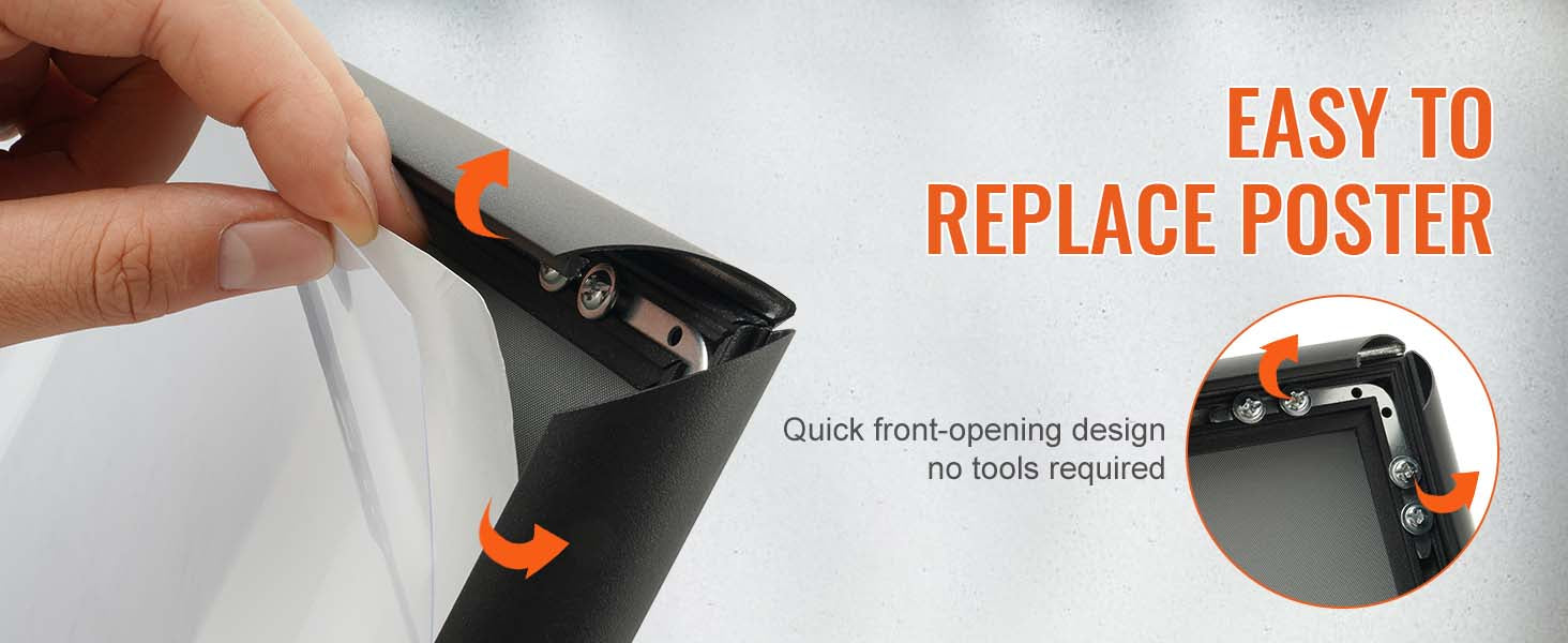 - Quick Poster Change: Front-opening design makes replacing posters a breeze—no tools required!