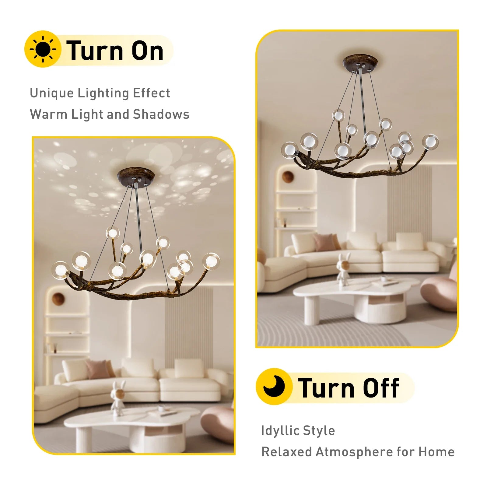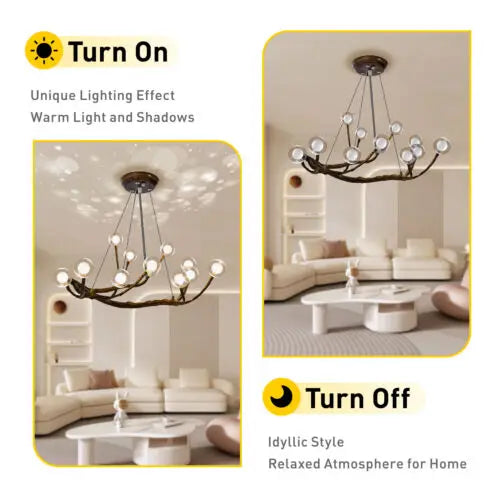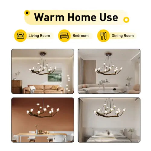 The Ljustra Vintage Rustic Tree Branch Glass Ball Chandelier is not just a lighting fixture; it's a stunning centerpiece that brings warmth and charm to any room. Perfect for your living room, dining area, or bar, this chandelier combines natural elements with modern design.