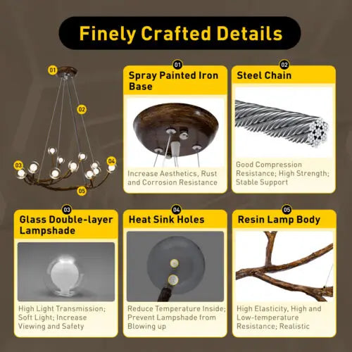 - Unique Design: Imitated branch lamp body crafted from resin, showcasing a retro texture and elegant charm.