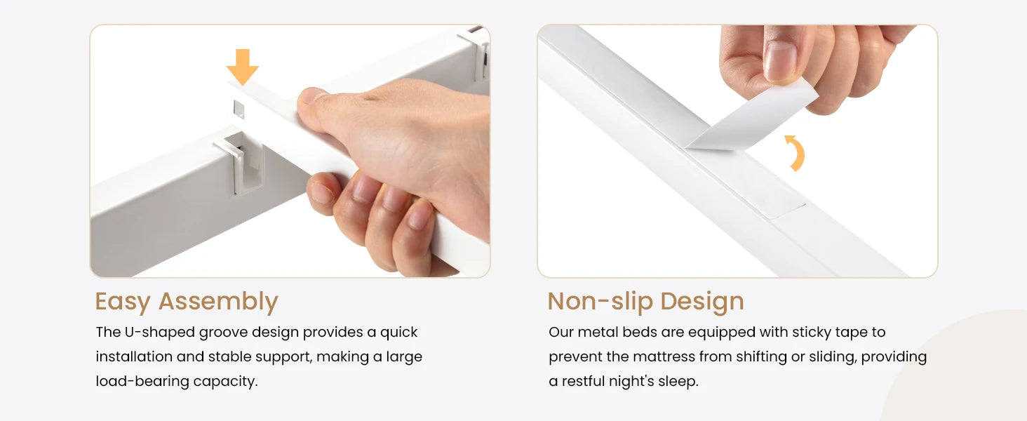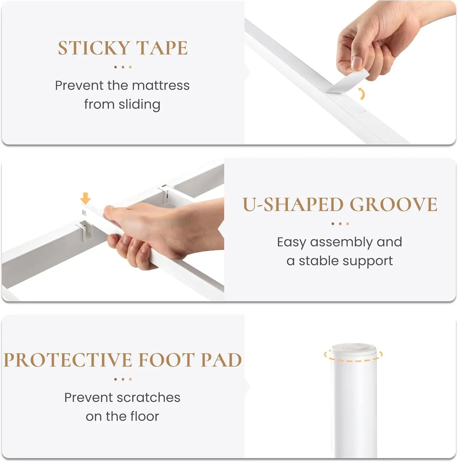 - Noise-Free Experience: Equipped with EVA sponge cushioning, this frame reduces noise from slats, ensuring peaceful sleep without disturbances.