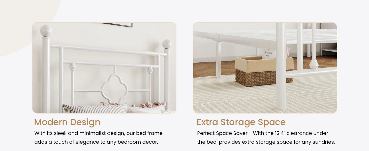- Sturdy and Durable: Built with heavy-duty metal support legs, this bed frame provides a solid foundation for a restful night's sleep.