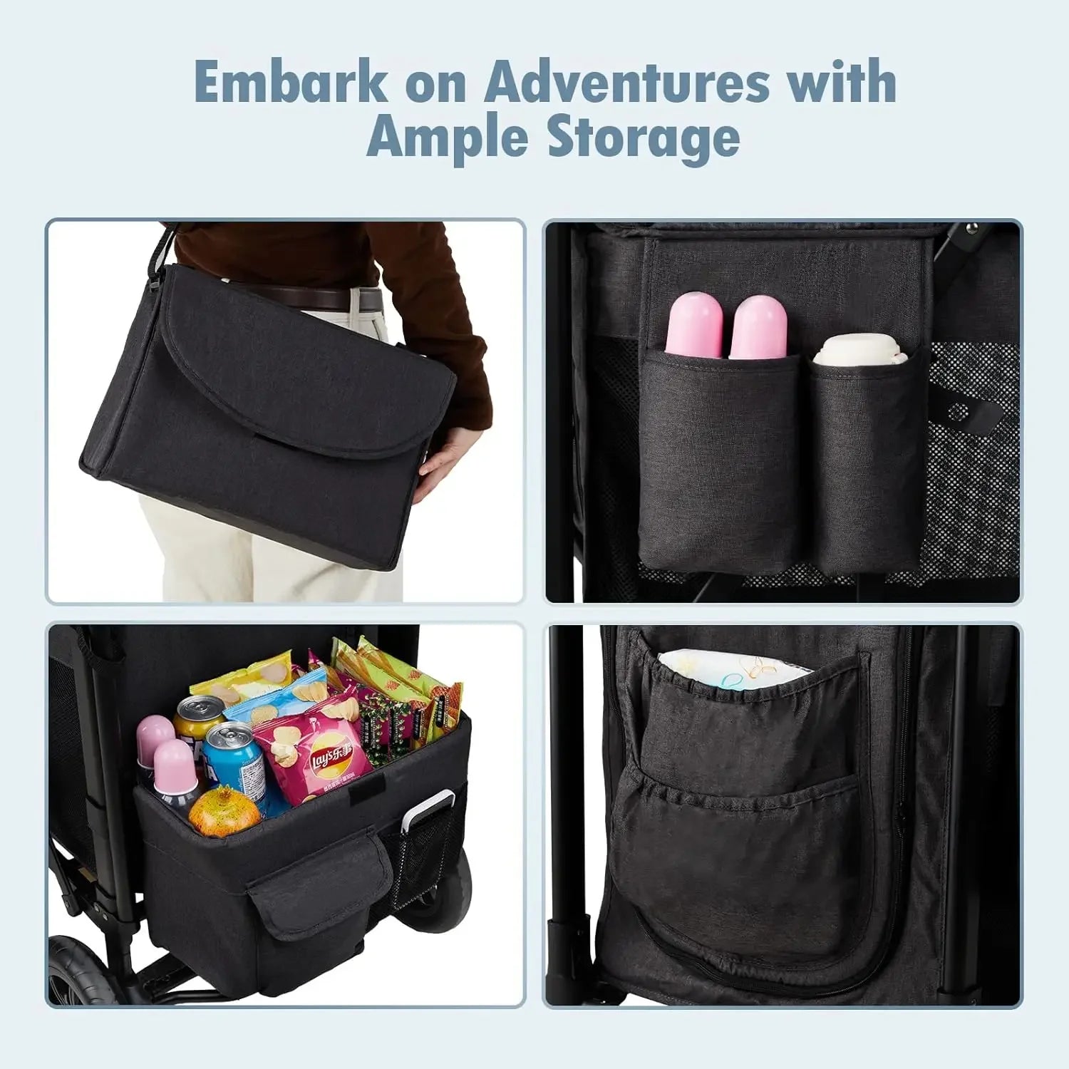 Wagon Stroller for 2 Kids Foldable All-Terrain with Canopy and Organizer