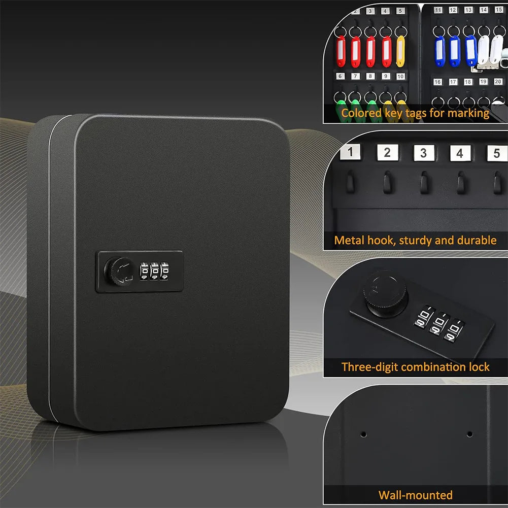 - Compact and Spacious Design: Measuring 7.87 x 6.3 x 3 inches, this key cabinet accommodates up to 20 regular or car keys, making it ideal for your home or office.