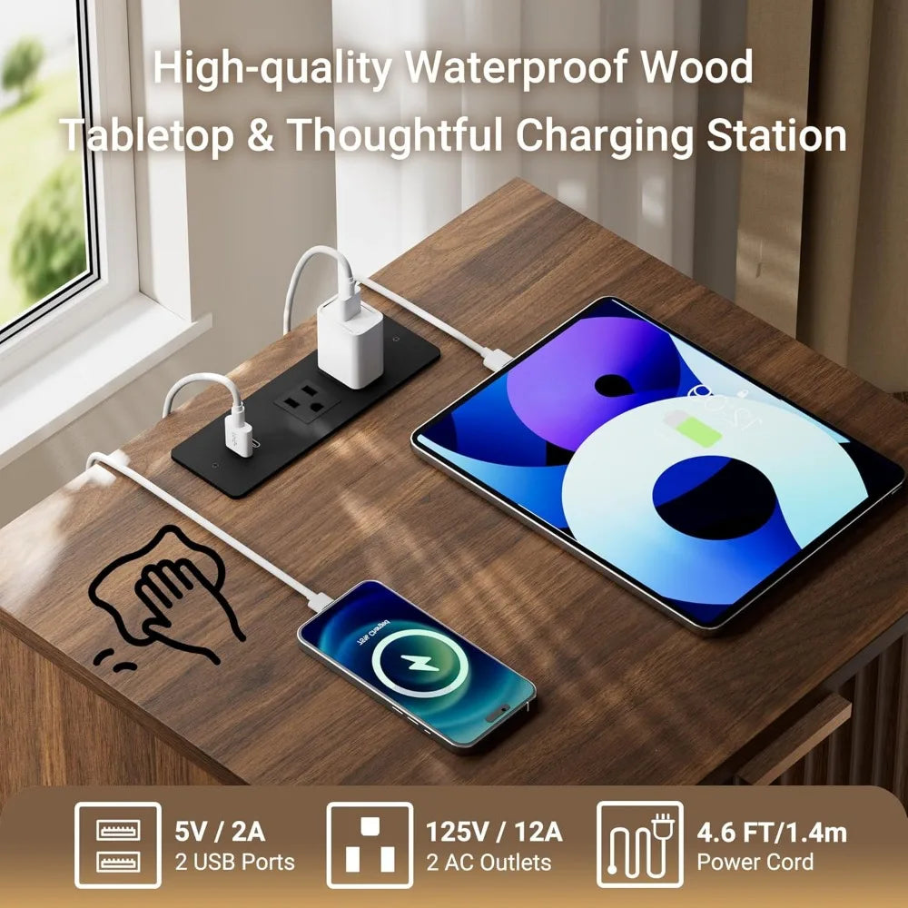 - Convenient Charging Station: Equipped with an ETL & FCC-certified charging station featuring 2 AC outlets and USB ports, keeping your devices charged and within reach.