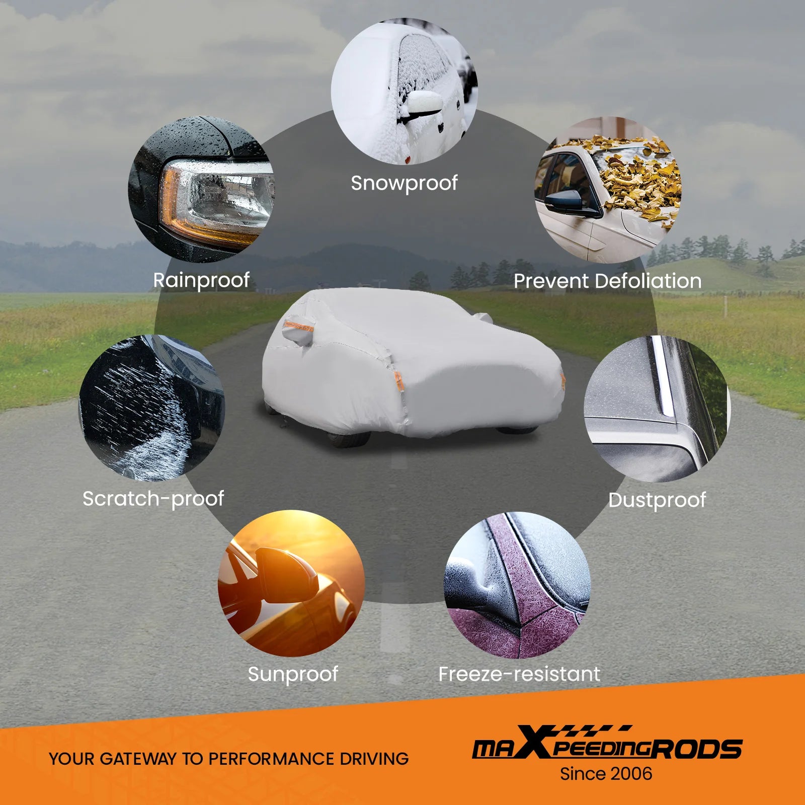 Ensure your car remains in pristine condition with our White Full Car Cover. Designed to fit sedans from 15.5FT to 16FT (186-193 inches), this cover is the ultimate solution for protecting your vehicle from harsh weather elements, dust, and scratches.