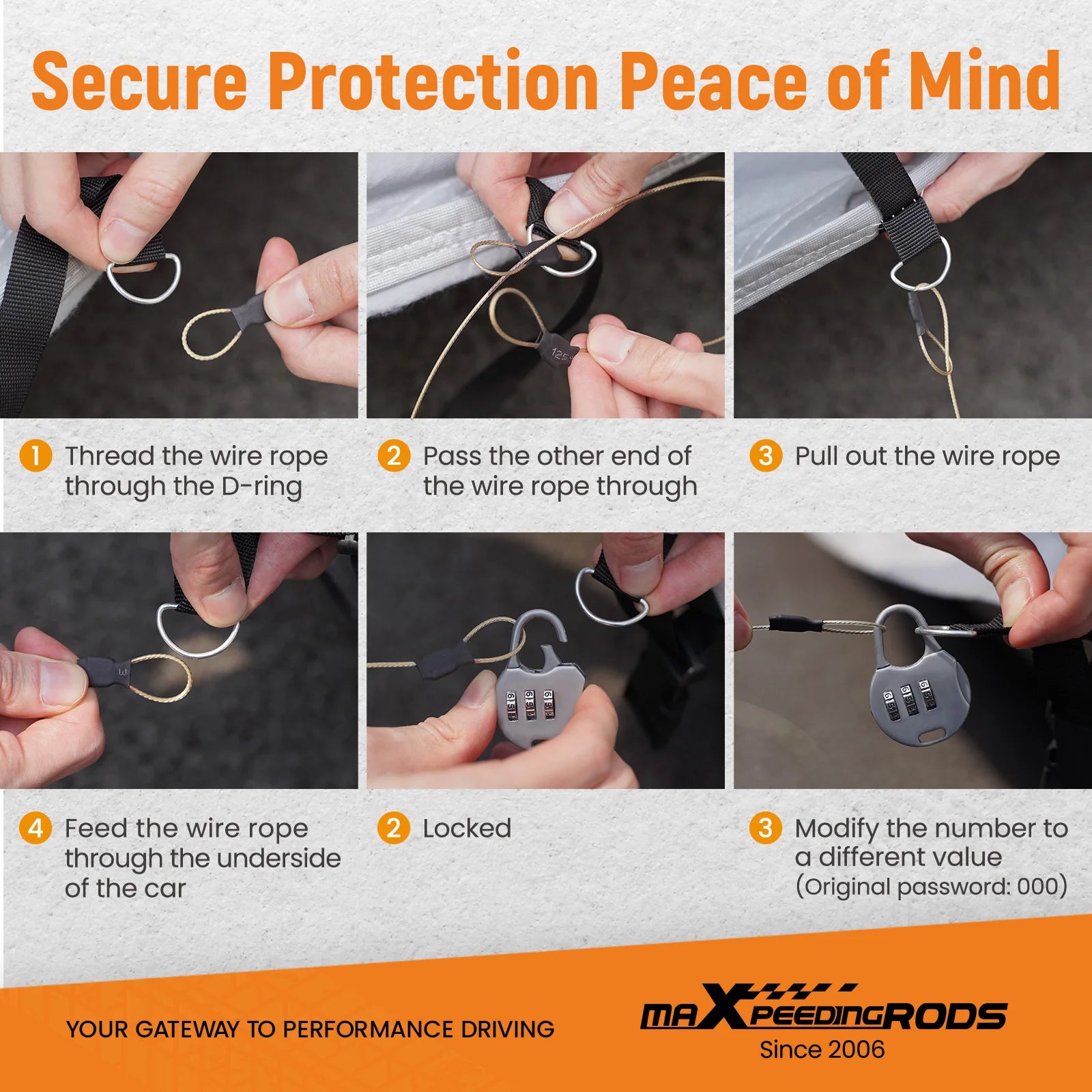 - Package Includes: 1 x Car Cover, 1 x Storage Bag, 1 x Lock