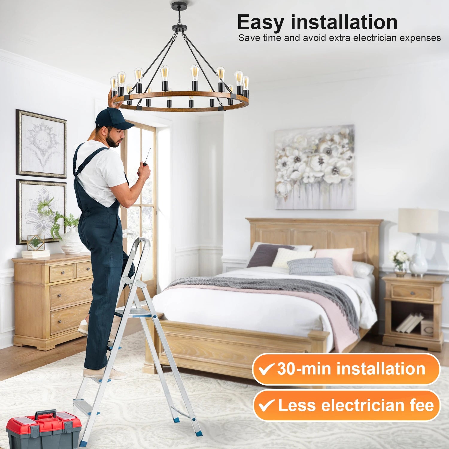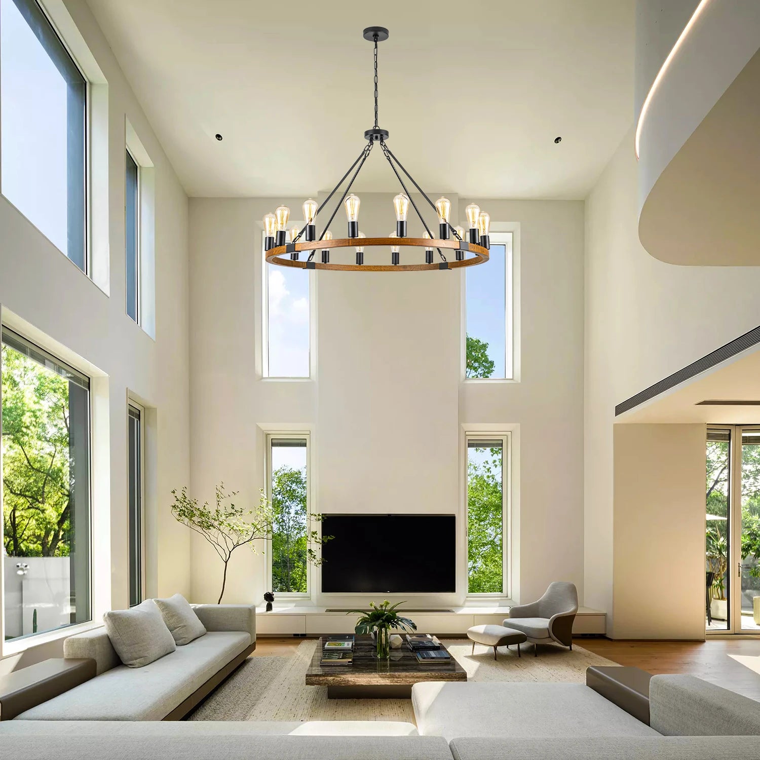 Wood Wagon Wheel Chandelier Rustic Farmhouse 16-Light Pendant Light